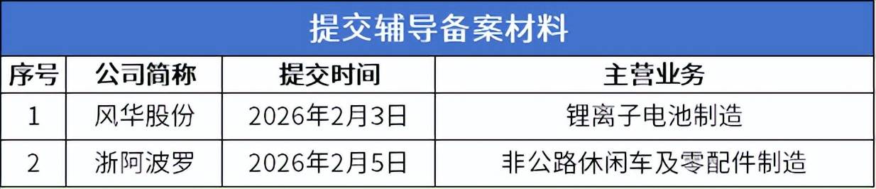 佑威新材通知布告显示,2025年12月,公司向浙江监局报送了存案申请材料,2月3日证监局受理了公司提交的上市存案申请,公司进入期,机构为中信建投证券。