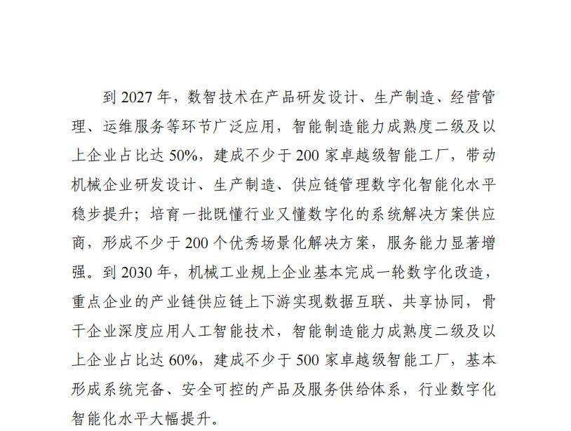 2025年7月,工业和消息化部等八部分印发《机械工业数字化转型实施方案》(以下简称《方案》),按照《方案》到 2030 年,机械工业规上企业根基完成一轮数字化,沉点企业的财产链供应链上下逛实现数据互联、共享协同,企业深度使用