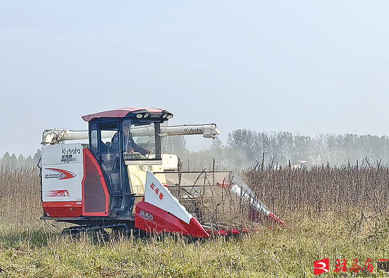 10月9日,正在新蔡县孙召镇郎庄村广袤的郊野里,机声隆隆,800余亩芝麻送来了收成期。几台大型结合收割机来回穿越,开脚马力对芝麻进行抢收。记者 熊国森 通信员 杨琳琳 摄影报道。